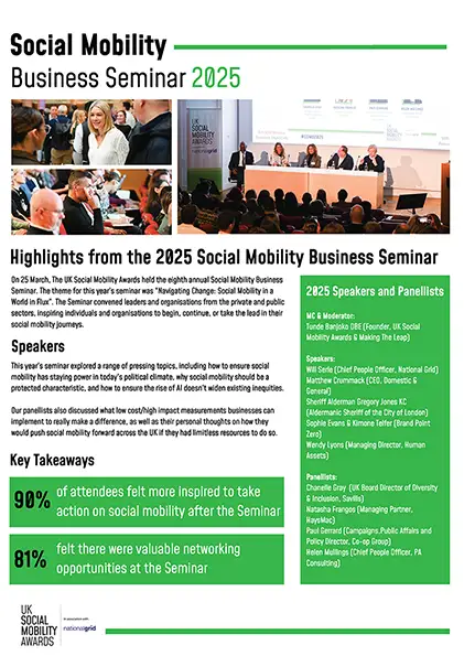 We will announce the date of the 2026 Social Mobility Business Seminar shortly. You can download the Key Takeaways Report from the 2025 Business Seminar here.